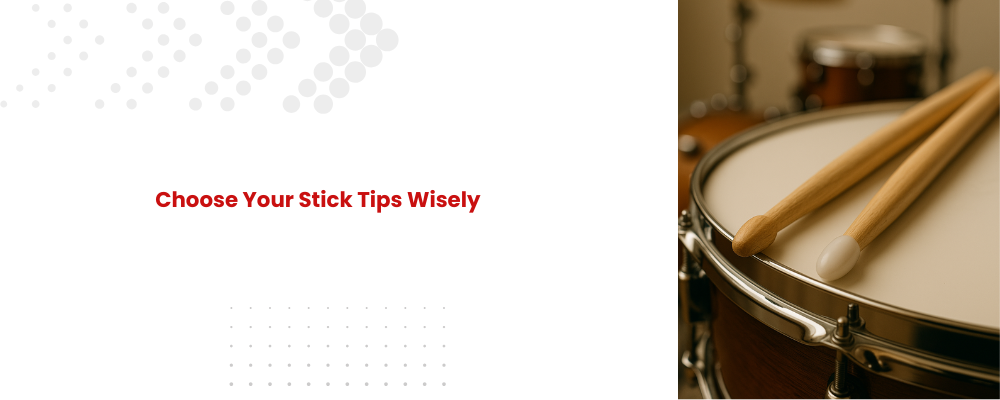 The tip of a drumstick changes how it sounds. Wood tips give a warm, natural tone, while nylon tips are brighter and last longer. For beginners, either works, but nylon tips are great if you want durability.