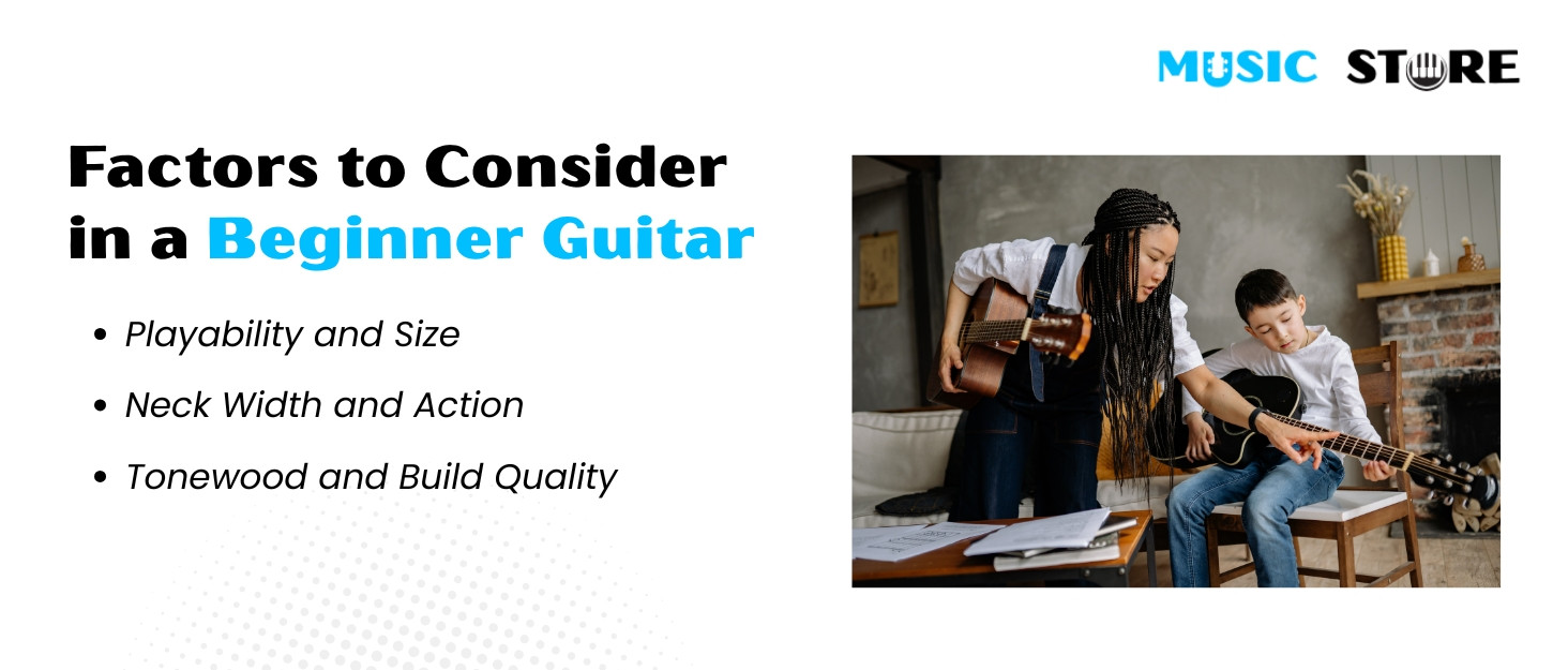 A beginner guitar should match the player's body size. For younger players or those with smaller frames, ¾ size guitars or parlor-style acoustics provide better comfort and playability.