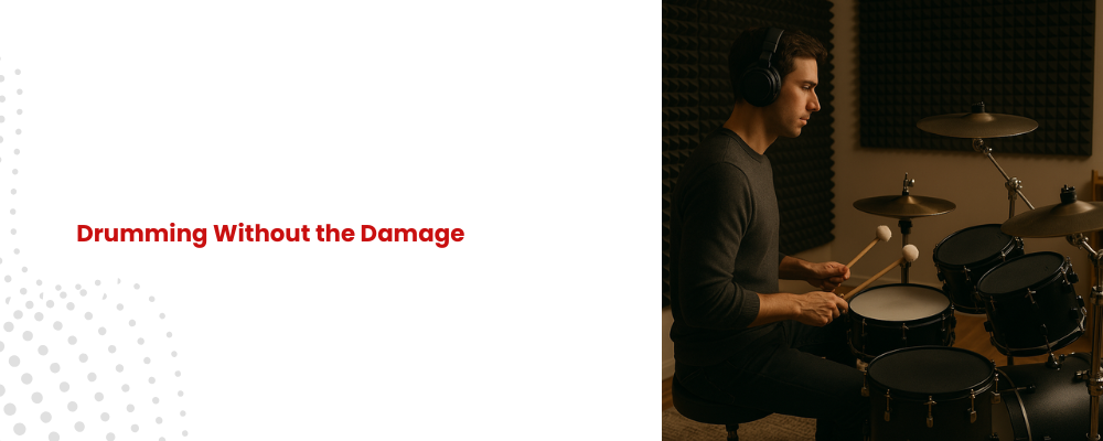 Noise reduction measures — such as practice pads, mesh heads, and soundproofing — help protect hearing and make practice safer. A scientific review on noise-induced hearing loss and its prevention confirms that controlling exposure reduces long-term auditory damage. Similarly, NCBI research on noise exposure highlights that high sound levels affect not only hearing but also overall well-being.