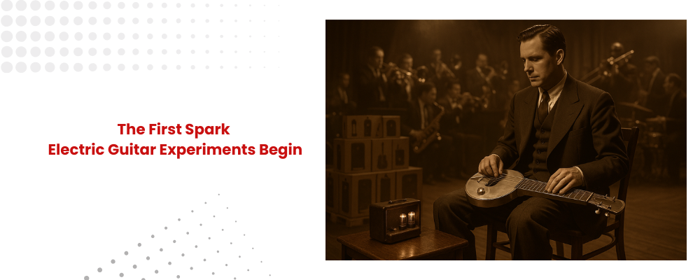 In the 1930s, big bands were growing louder, and acoustic guitars struggled to be heard. The breakthrough came when Rickenbacker introduced the “Frying Pan”, considered the first true electric guitar. Using magnetic pickups, it turned string vibrations into electrical signals that could be amplified.